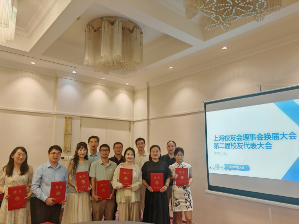 陈朝阳向新当选的第二届理事会领导机构成员颁发聘书,并对上海校友会成功换届表示祝贺。