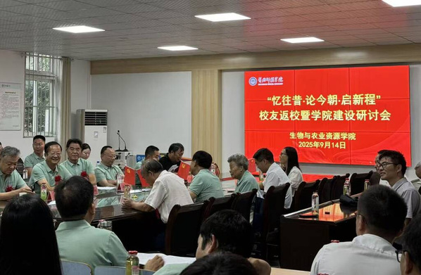 漆昌柱介绍了学校近年来良好的发展态势,对生物与农业资源学院近6000名校友为经济社会发展作出的贡献给予了充分肯定和高度赞赏。他指出,母校与校友,正如沃土与嘉木,彼此依存,共生共荣,他希望生物与农业资源学院校友分会要深扎根系,共植一片“常青林”,要以学科特色为养分,以丰富活动为枝干,以合作交流为根系,共同培育一片情感互联、资源互享、事业互通的绿洲。要嫁接智慧,共育一片“成才林”,着力挖掘和宣传校友奋斗故事,全面融入学生思政教育,促进科教协同与产教融合,全面构建协同育人新生态。要交互滋养,共筑一片“丰茂林”,把校友优势转化为发展胜势,打造“校友-母校-区域经济”共生共荣的良性生态圈。