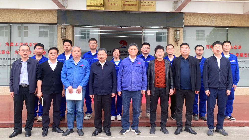 在湖北省宏源药业科技股份有限公司,董事长尹国平、总经理徐双喜等热情接待陈向军一行,9位在企校友代表参加座谈。